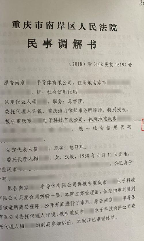 南京某半导体公司与重庆某科技公司合同纠纷