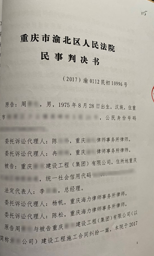 周某某与重庆某建设公司施工合同纠纷