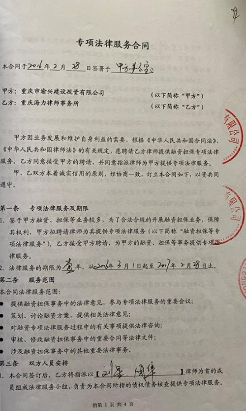 重庆渝兴建筑建设投资有限公司专项法律服务